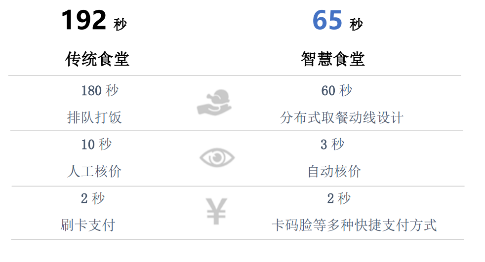 智慧食堂,讓線下選餐和支付更加快捷,實現員工“進入食堂、支付就餐”在 1 分鐘左右完成,讓員工更多時間享受美食: