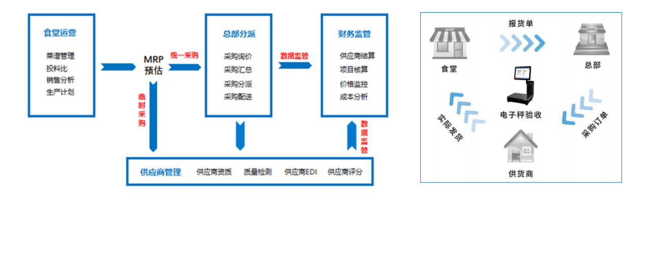 智能供應鏈管理,進銷存數據自動關聯,引入電子秤對出入庫精準管理,全面提高后廚生產管理效率;支持菜譜生產計劃,改變經驗備餐、估算備餐的運營習慣,精準把控備餐成本。